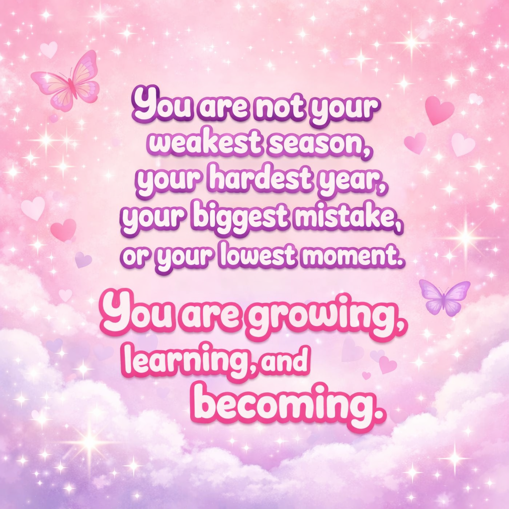 One of the most freeing truths we learn is that we are not our weakest season, our hardest year, our biggest mistake, or our lowest moment. We are human beings who are growing, learning, and becoming. Mistakes are moments. They are not identities.